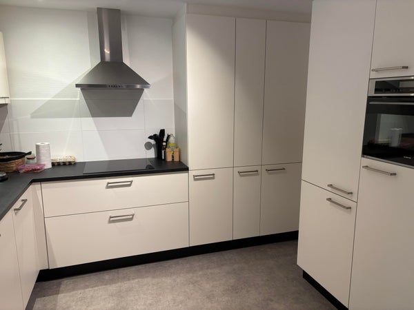 De aanwezige inbouwkeuken is geheel nieuw en is voorzien van inbouwapparatuur, zoals een vaatwasser, inductiekookplaat met afzuigkap, koelkast, vrieskast en oven-magnetron.