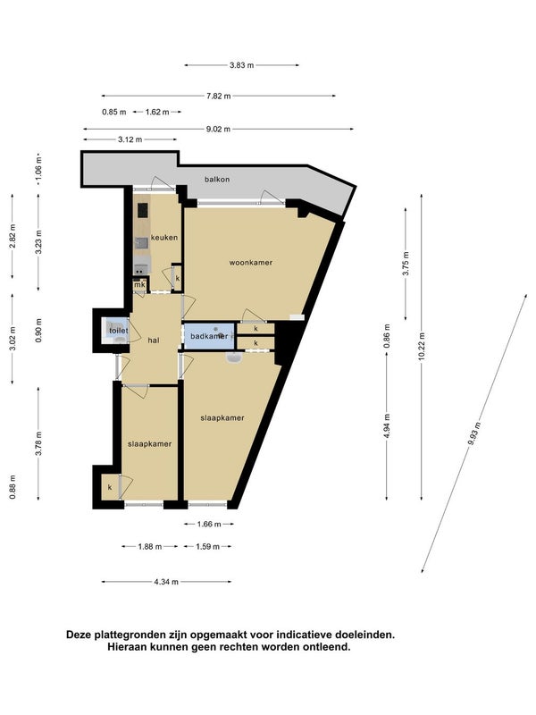 Balkon is ca 3.12 x 1.06 en niet zoals op plattegrond is weergegeven