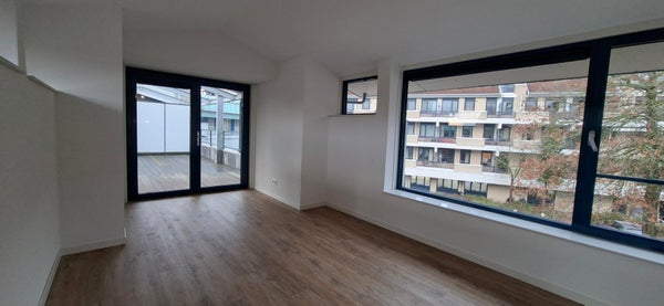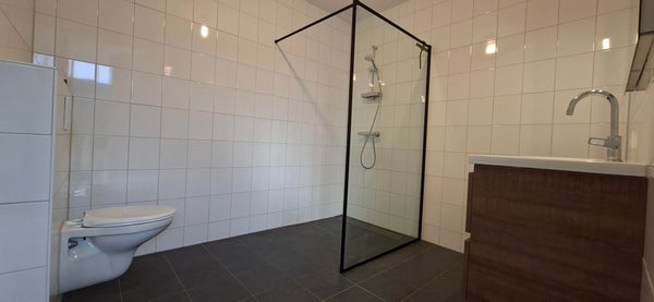 De woning beschikt naast een ruime woonkamer ook over een slaapkamer van 18 m² en een slaap/werkkamer van 16 m². Een nette badkamer met toilet, wastafel met meubel en een af te sluiten douchecabine. Hier is ook plaats voor het aansluiten van een wasmachine.