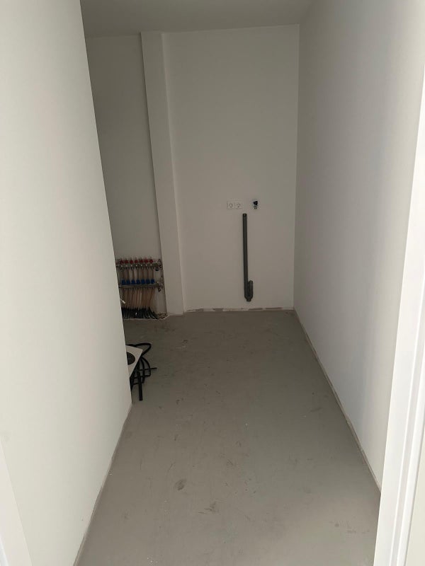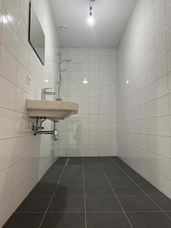De badkamer is afgewerkt en uitgerust met een inloopdouche, wastafel en een spiegel met ingebouwde verlichting. Verwarming vindt plaats via een energiezuinige warmte-unit. De foto's in de advertentie zijn gemaakt tijdens de renovatie.