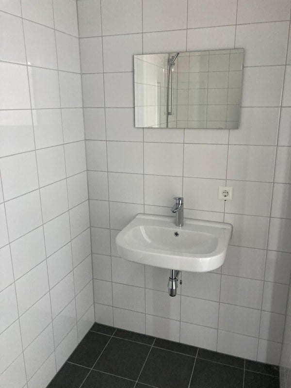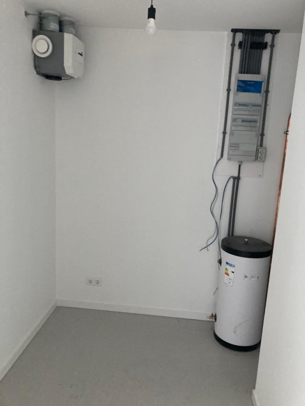 De badkamer is afgewerkt en uitgerust met een inloopdouche, wastafel en een spiegel met ingebouwde verlichting. Verwarming vindt plaats via een energiezuinige warmte-unit. De foto's in de advertentie zijn gemaakt tijdens de renovatie.