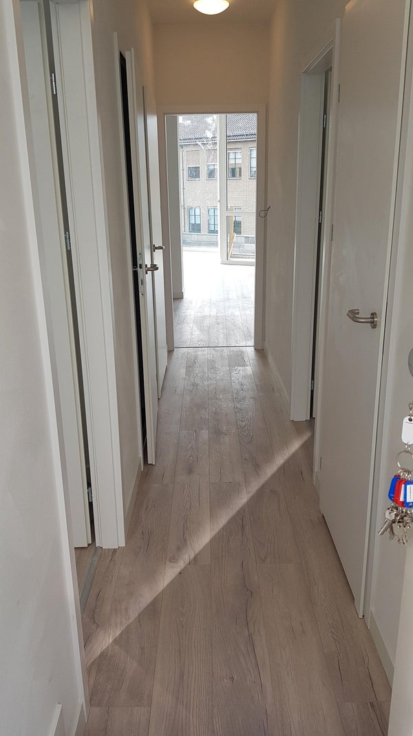 Appartement op de begane grond. Het appartement heeft een eigen grote woonkamer met open keuken. De luxe keuken is uitgerust met inbouwapparatuur (elektrische kookplaat, afzuigkap, koel-vriescombi). Badkamer met inloopdouche, wastafel en spiegelkast.