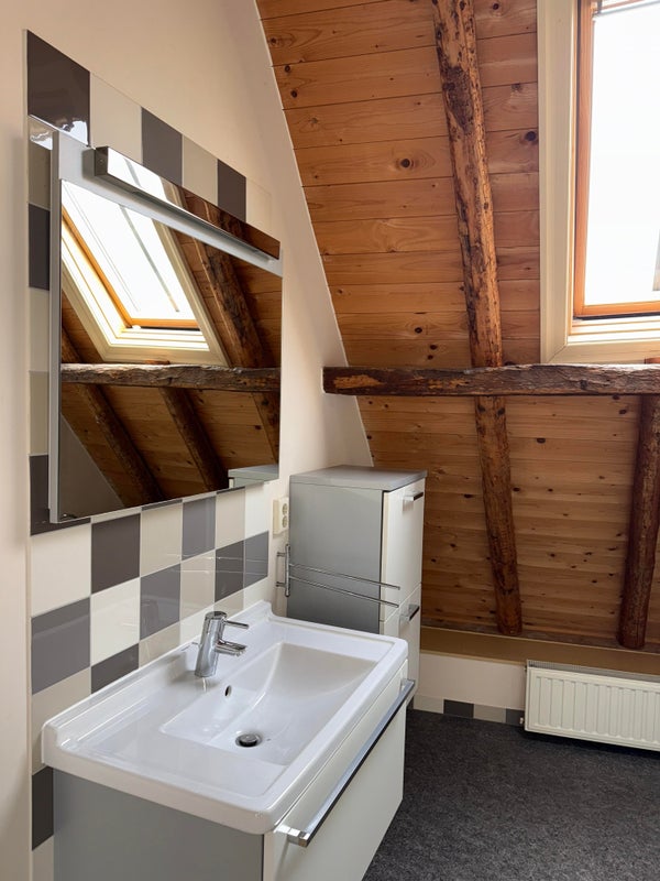 Met een oppervlakte van 87m2 biedt dit charmante verblijf, een ruime woonkamer met open verbinding naar woonkeuken v.v. alle apparatuur, een royale slaapkamer, badkamer met wastafel met meubel, een toilet en een douche, Vanuit de woonkeuken toegang tot een dakterras van ruim 20m2. Het appartement is gelegen op de eerste verdieping onder monumentaal spant (gerenoveerd en geisoleerd) en beschikt over een inpandige berging met wasmachine en droger.
