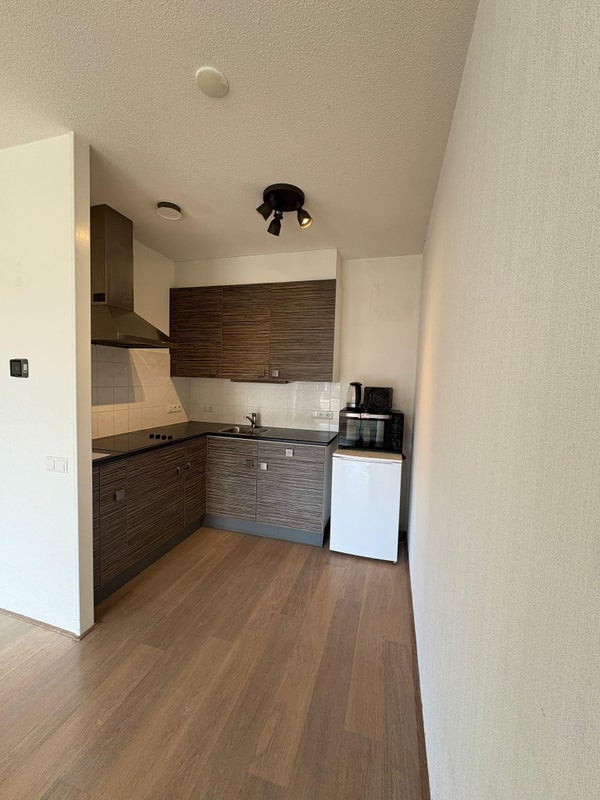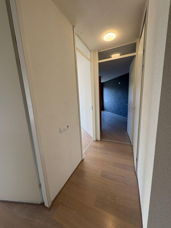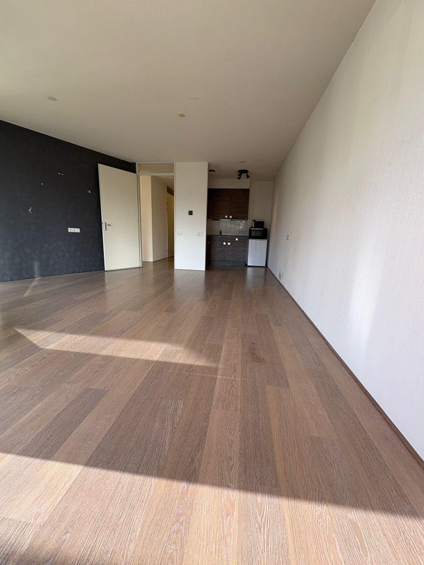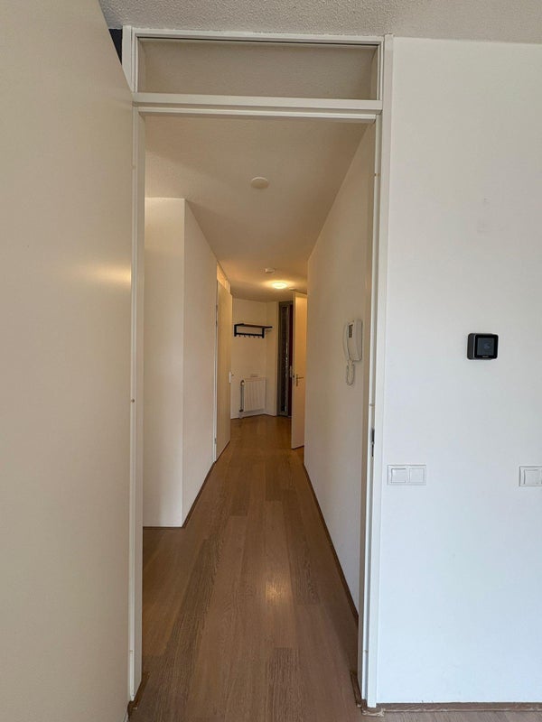 Entreehal, berging met opstelling c.v. ketel en aansluiting wasmachine en droger. Toegang tot de royale woonkamer met moderne half open keuken, voorzien van een inductiekookplaat, en inbouwapparatuur. De woonkamer heeft veel licht inval en vanhieruit heeft u toegang tot een ruim balkon en middels een schuifdeur toegang tot een slaapkamer/kasten kamer.
