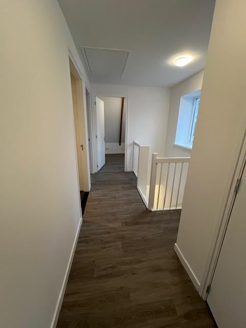 Je komt binnen in een hal waarna je links de trap op kunt; eenmaal boven kom je aan op een ruime lichte overloop. De overloop biedt je toegang tot: