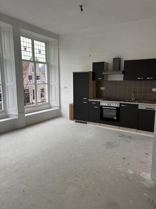 - Woonkamer met open keuken: De ruime woonkamer is voorzien van een moderne open keuken, uitgerust met inbouwapparatuur zoals een vaatwasser, inductie kookplaat, oven, en koelkast. Vanuit de woonkamer heb je prachtig uitzicht op de stadsgracht. Woonkamer is voorzien van airco installatie.