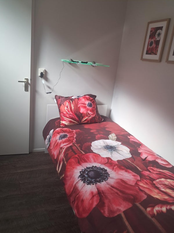 De woonkamer is stijlvol ingericht met moderne meubels, wat zorgt voor een luxe uitstraling. Een belangrijk detail zijn de hoge ramen, waardoor er veel licht is in de woning. Zowel de woonkamer als grote slaapkamer beschikken over een airco.
