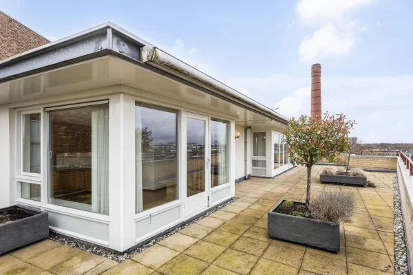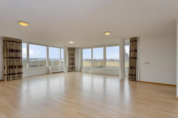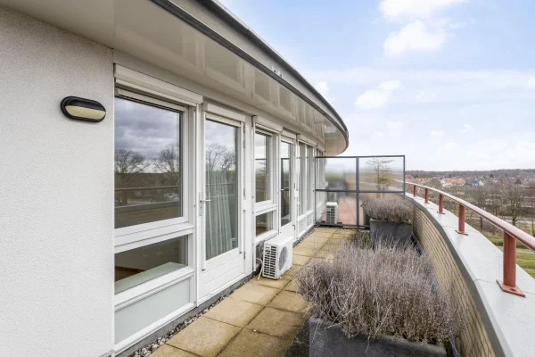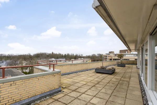 Met maar twee appartementen op de bovenste verdieping biedt dit penthouse veel privacy. De ruime woonkamer met grote ramen en een schuifpui leidt naar een onderhoudsvriendelijk dakterras van 122 m². De hoeken keuken is goed uitgerust met moderne apparaten. De master bedroom met airco heeft ook toegang tot het dakterras. De badkamer is rolstoelvriendelijk en de woning heeft voldoende bergruimte. Tevens is er een privé berging en parkeerplaats.