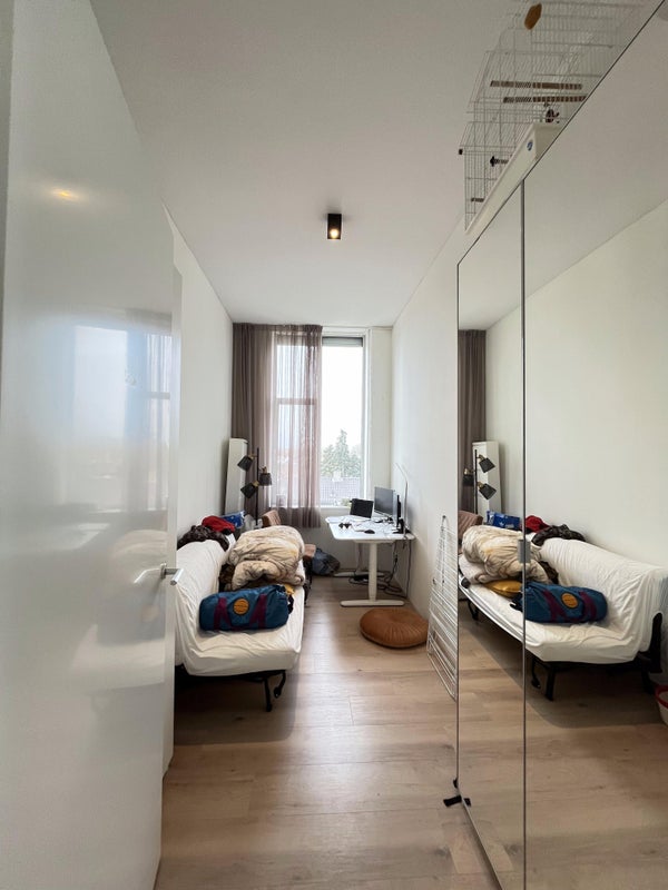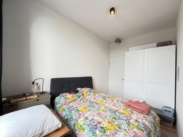 Entree in ruime hal met toegang tot de 2 slaapkamers, badkamer en het toilet. Ruime slaapkamer van ca. 12 m² gelegen bij de entree aan de linkerkant. Een kamer verder vind je ook aan de linkerkant de andere slaapkamer van ca. 9m². Tegenover de slaapkamers vind u het volledig betegelde badkamer voorzien van wastafel en inloopdouche. Separate zwevend toilet en fonteintje. Entree in de ruime woonkamer van ca. 30 m². In de woonkamer is de berging voorzien van de technische installaties en de wasmachine aansluiting. In de woonkamer vind u de keuken dat is geplaatst in een wandopstelling en voorzien van de volgende inbouwapparatuur: vaatwasser, combi magnetron, koelkast, inductie kookplaat en afzuigkap. De woonkamer geeft toegang tot het balkon van ca. 11 m².