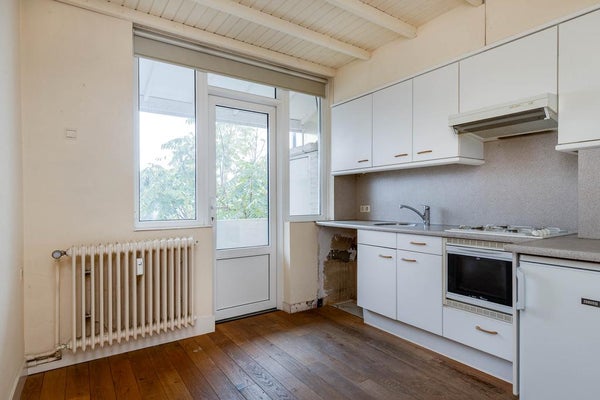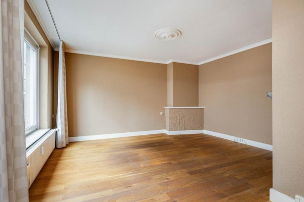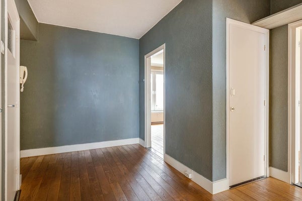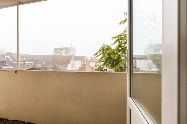 Het appartement ligt op de eerste verdieping en heeft een lichte woonkamer van ongeveer 25 m² met een houten vloer. De gesloten keuken is uitgerust met een 4-pits gasfornuis, afzuigkap, oven en koelkast en biedt toegang tot het balkon van circa 2 m². De badkamer heeft een douche en wastafel, met een aparte toiletruimte. Beide slaapkamers hebben een houten vloer: de eerste van ongeveer 12 m² en de tweede van 5 m².