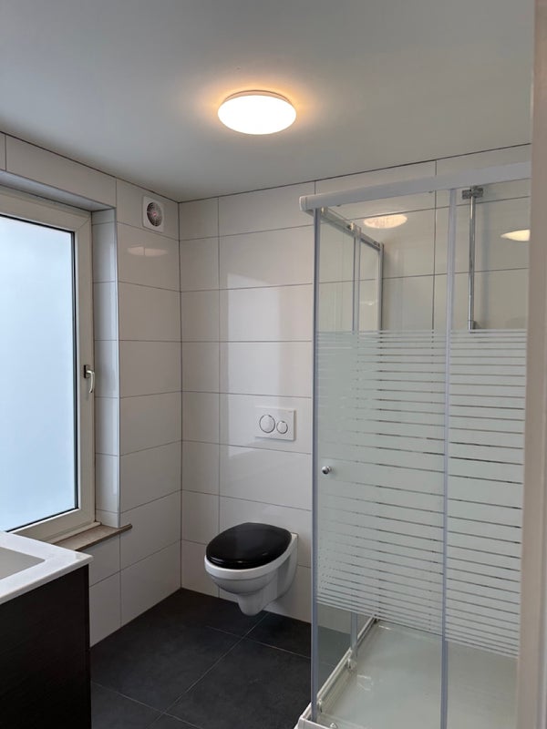 Naast de keuken vindt men een badkamer (ca. 4m2) voorzien van douche, wastafelmeubel en zwevend toilet.