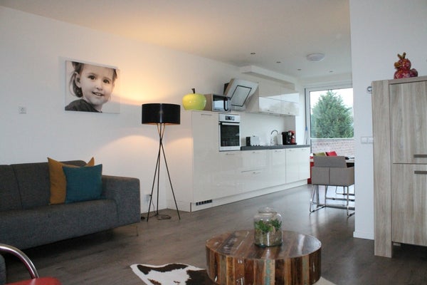 Ruime woonetage met een separate toiletruimte, lichte woonkamer en een open woonkeuken.