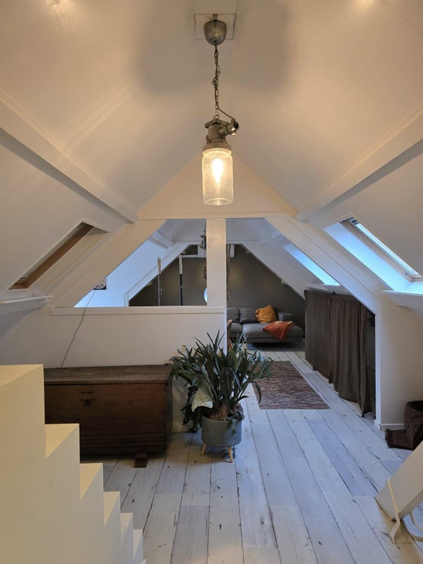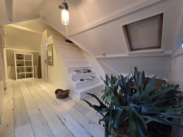 Via de ingang naast de kunstgallerie, kan men zo de trap op, waar men uit komt in het appartement. Het appartement is volledig gemeubileerd en voorzien van een aparte slaapruimte met 2 persoonsbed, een volledig uitgeruste keuken, met inductiekookplaat, vaatwasser, oven-magnetron en koelkast. In de keuken staat ook nog een tafel en een zitbank. De badkamer is voorzien van een ligbad, een aparte inloopdouche, handoekenradiator en een wasmachine en droger. De woonkamer welke erg veel natuurlijk licht heeft, is voorzien van een grote zitbank, een eettafel met 4 stoelen en een charmante zithoek recht voor de grote schuifpui welke toegang geeft tot het dakterras.