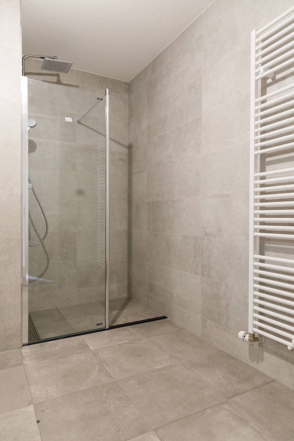 De badkamer wordt u in luxe uitvoering opgeleverd en zal voorzien zijn van een inloopdouche, twee wastafels en een handdoekenradiator. Door de stijlvolle kleurenkeuze van tegels en badmeubels een prachtige uitstraling, helemaal van deze tijd. Zie ook voor de badkamer de impressies bij deze advertentie.