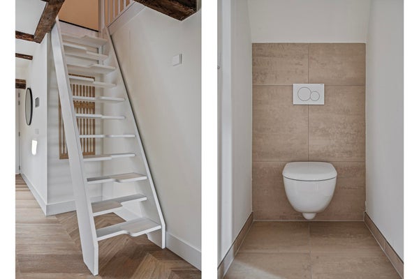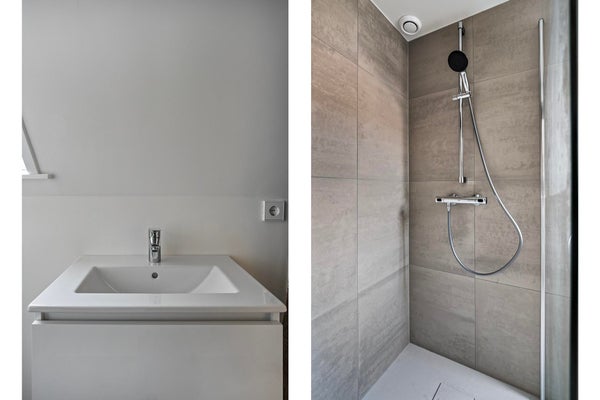 De woning beschikt over een apart toilet met een vrijhangend design. De badkamer is modern en praktisch ingericht en voorzien van een ruime inloopdouche, een handdoekradiator, een wastafel met spiegel en een was-/droogmachine, zodat u direct beschikt over alle benodigde voorzieningen.