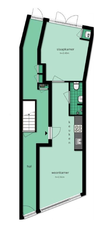 Aan de rand van het Centrum en op 5 minuten loopafstand van het Centraal station gelegen 2 kamer appartement (ca.35m2) met gedeelde patio aan achterzijde.