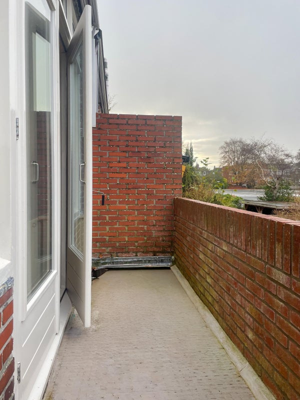 Balkon over de breedte van de woning (bereikbaar vanuit de woonkamer en de keuken).
