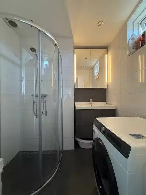 - Badkamer: Nette douchecabine en wastafelmeubel