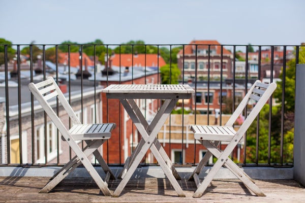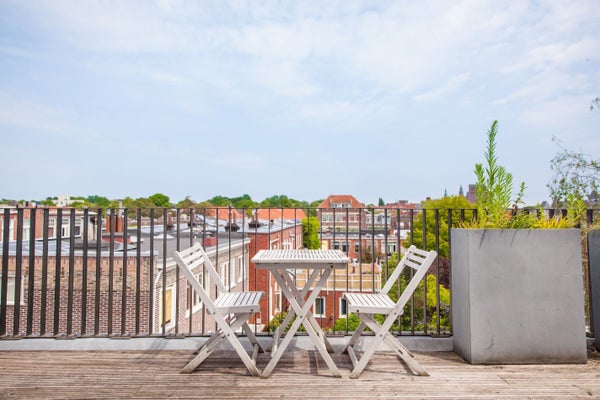 het beschikt over een balkon en een mega dakterras! We bieden dit aan inclusief bedlinnen, badlinnen en housekeeping.