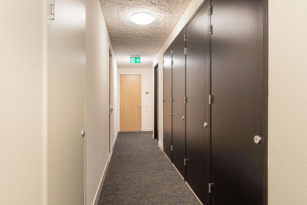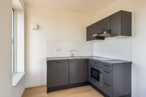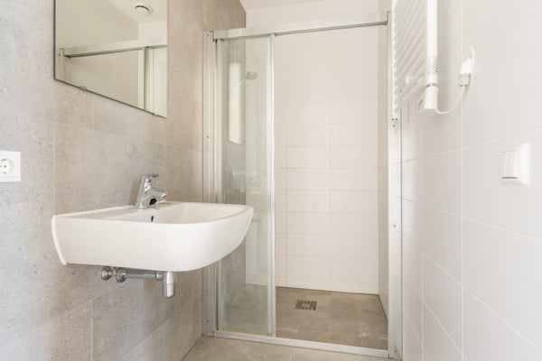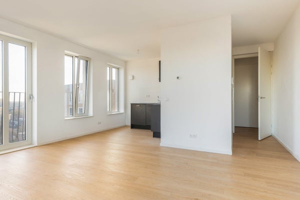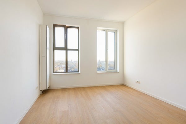 Dit appartement heeft 1 slaapkamer en een woonoppervlakte van 50 m2. De woonkamer biedt ruimte voor een loungebank en een grote eettafel, dankzij de open hoekkeuken. Hoge ramen zorgen voor veel lichtinval. De slaapkamer is bijna 12 m2 en laat ruimte voor een bureau en een grote kastenwand. Vanuit de slaapkamer heb je directe toegang tot de doucheruimte met douche en wastafel.