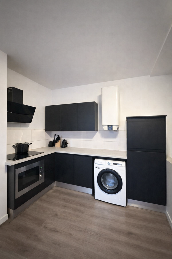 De keuken is modern uitgevoerd en voorzien van een inductiekookplaat, vaatwasser en koelkast. Het appartement wordt verwarmd middels een warmtepomp, wat bijdraagt aan een comfortabel en energiezuinig woonklimaat.