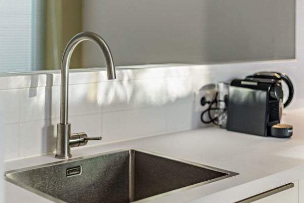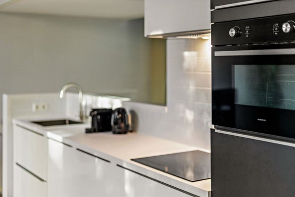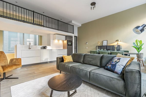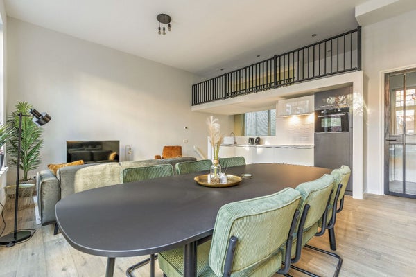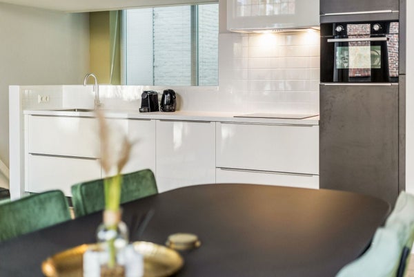 Sfeervolle, lichte woonkamer met open keuken, voorzien van alle luxe.