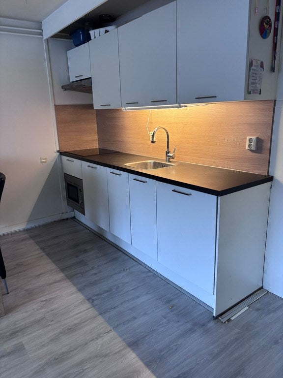 Via de entree betreed je het appartement van 36,95m2 op de eerste verdieping en neem je direct de trap omhoog naar de woonkamer met open keuken. De keuken is modern uitgevoerd en voorzien van een inductiekookplaat, koelkast, vaatwasser en een combinatie oven-magnetron. De badkamer beschikt over een douche en wastafelmeubel. Het appartement heeft een slaapkamer van 8m2 en een dakterras.