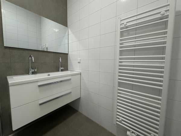 De twee comfortabele slaapkamers van respectievelijk circa 10 m² en 12 m² bieden veel natuurlijke lichtinval. De badkamer is royaal opgezet met een oppervlakte van circa 4 m² en beschikt over een moderne afwerking, een dubbele wastafel met meubel en een luxe inloopdouche. Daarnaast zijn er afzonderlijke toiletruimtes aanwezig.