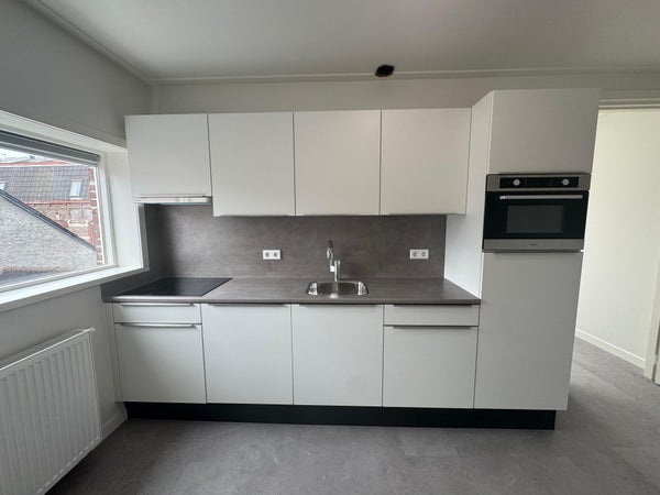 De woning beschikt over een ruime, lichte woonkamer met open keuken van circa 30 m², die fungeert als centrale leefruimte met diverse indelingsmogelijkheden. De keuken is modern uitgevoerd en voorzien van alle benodigde inbouwapparatuur, waaronder een vaatwasser, inductiekookplaat, afzuigkap, koelkast en combi-oven/magnetron.