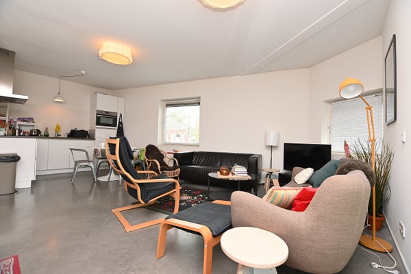 Via de lift op trap is de woning te bereiken. Je komt aan in de hal en via hier is er toegang naar een ruime woonkamer met open keuken. De keuken is voorzien van een inductie kookplaat, wasemkap, inbouw oven, inbouw koelkast met vriesvak, vaatwasser en veel bergruimte. Gegrensd aan de woonkamer is er een balkon met uitzicht over de Hereweg. De slaapkamer heeft voldoende ruimte voor een tweepersoonsbed en er is een special hoek voor een bureau. Gegrensd aan de slaapkamer is een badkamer die voorzien is van een douche, wastafel met spiegelkast. Het toilet bevindt zich op de hal.