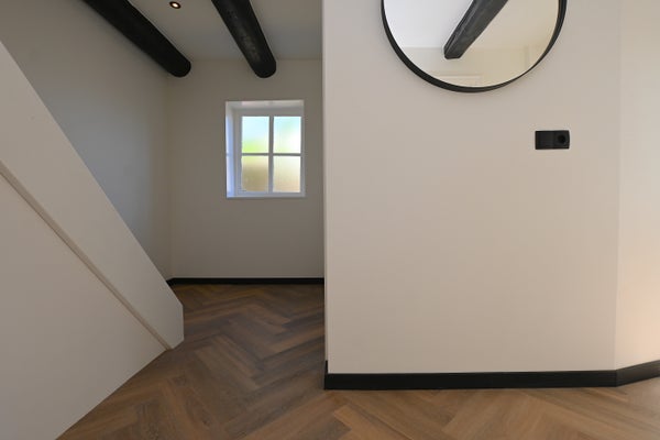 Via de hal heb je ook toegang tot het toilet en het washok, evenals dat in de hal zich de trap naar boven bevindt. Hier kom je uit op de ruime overloop die toegang geeft tot de twee slaapkamers waar de karakteristieke elementen van het gebouw zijn behouden en ook tot de luxe badkamer die voorzien is van regendouche, wastafel met wastafelmeubel en tweede toilet. Het appartement wordt volledig gemeubileerd opgeleverd.