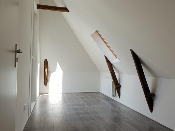 De twee slaapkamers zijn gelegen op de eerste etage en beschikken over prachtige, authentieke houten balken. Daarnaast heeft de badkamer een inloopdouche en een designradiator. Het toilet is apart gelegen van de badkamer.