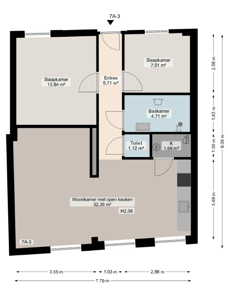 De huurprijs voor Vismarkt 7a3 bedraagt: € 1420,54 per maand, inclusief een voorschot van €100,- voor water, elektra en internet.