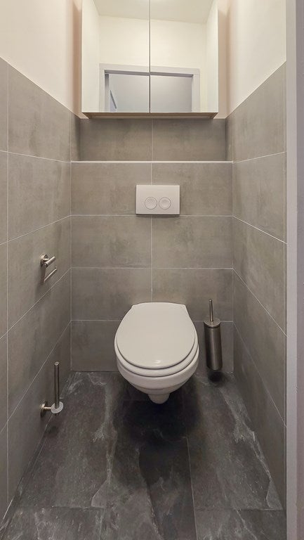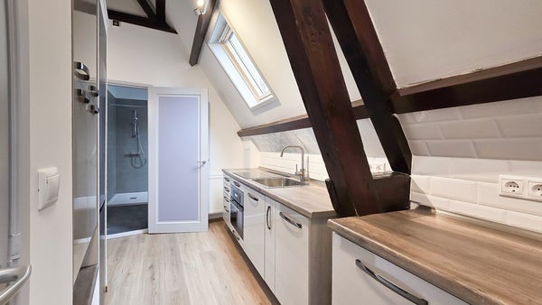 De afgesloten keuken beschikt over moderne inbouwapparatuur en een handig kiep-/kantelraam dat zorgt voor extra licht en ventilatie. De nette badkamer is voorzien van een inloopdouche, wastafel en toilet. Daarnaast is er een separaat gastentoilet aanwezig.