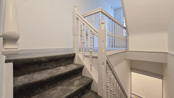 Via de fraaie gezamenlijke entree bereik je met de trap de tweede verdieping. De ruime woonkamer aan de voorzijde heeft grote raampartijen die zorgen voor een prettige lichtinval en een charmant uitzicht over de stad. Vanuit de woonkamer is er toegang tot een van de slaapkamers. De tweede, royale hoofdslaapkamer bevindt zich aan de rustige achterzijde van het appartement.