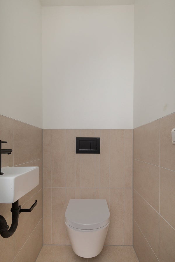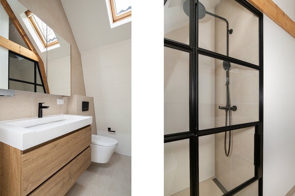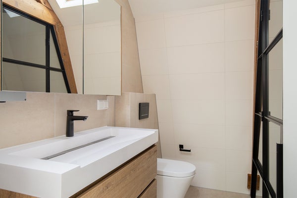 • Moderne/ nieuwe trendy badkamer met douche, toilet en wastafel en tweede toilet;