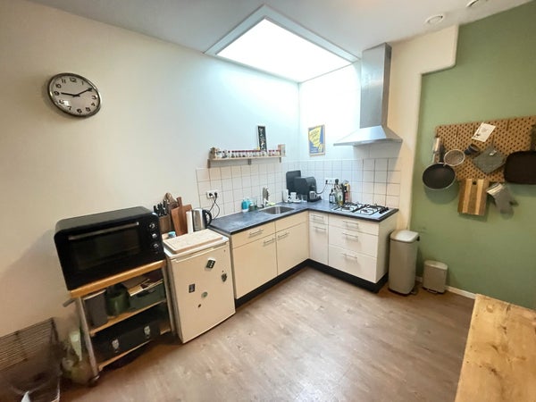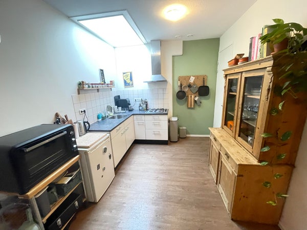 Privé entree, net afgewerkte woonkamer met openkeuken voorzien van gaskookplaat en afzuigkap, nette badkamer met wastafel, douche en toilet, deels afgescheide slaapgedeelte. Tevens beschikt de woonruimte over een separate berging en gedeelde buitenruimte op de 1e etage.