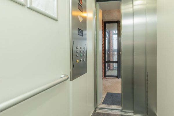 Begane grond: Centrale, veilige entree met trappenhuis en lift. Entree naar de kelder/parkeergarage hieronder, waar de berging en optionele privé parkeerplaats zich bevinden.