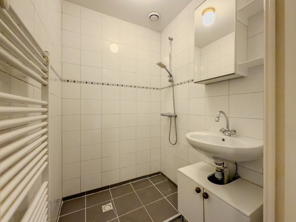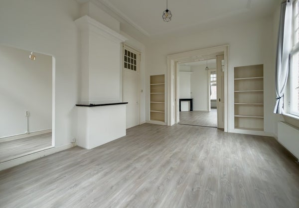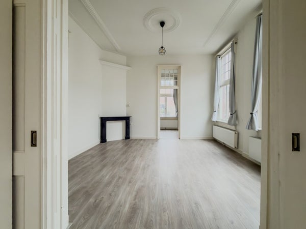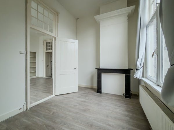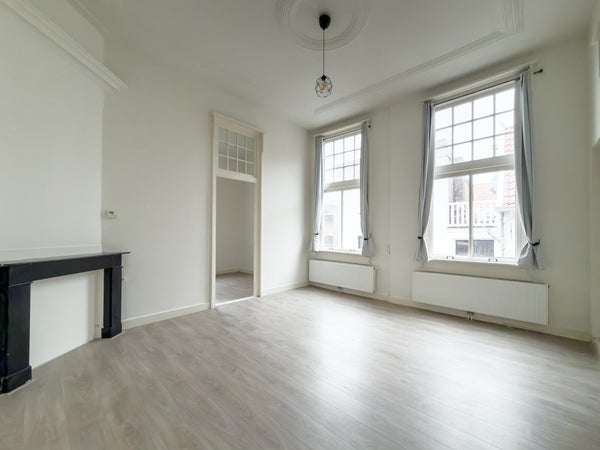 Dit sfeervolle appartement is gelegen op de eerste verdieping en voelt dankzij de hoge plafonds heerlijk ruim aan. De woning is opgedeeld in een woonkamer, eetkamer en slaapkamer aan de achterzijde van de woning. Daarnaast is er een separaat toilet, keuken en badkamer. De keuken is eenvoudig, maar wel voorzien van een kleine vaatwasser en koelkast. De badkamer heeft een wastafel en douche.