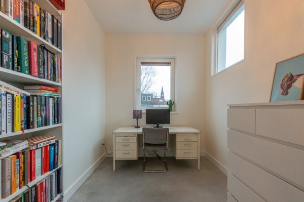Aan de achterzijde van de woning zijn de slaapkamers te vinden. Aan de rechterkant is de kleine kamer te vinden welke momenteel is ingericht als kantoor.