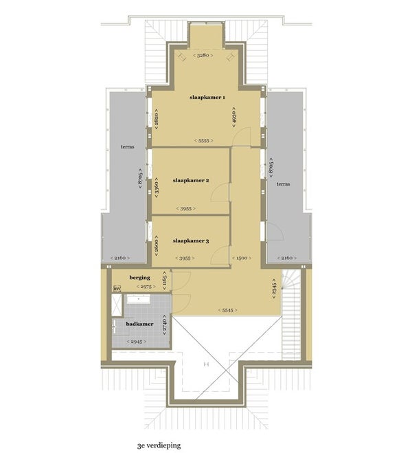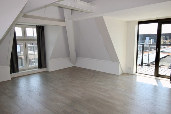 Slaapverdieping: vide met zicht op de woonkamer. Inpandige berging, badkamer met ruime wastafel, inloopdouche en toilet. Gang die toegang geeft tot 2 slaapkamers en de master bedroom, met ook hier weer balken in het zicht. Zowel vanuit de gang als iedere slaapkamer is er toegang tot één van de twee dakterrassen met uitzicht over Haarlem, zodat u 's morgens op het ene terras van uw kopje koffie kunt genieten en 's avonds kunt dineren op het andere terras.
