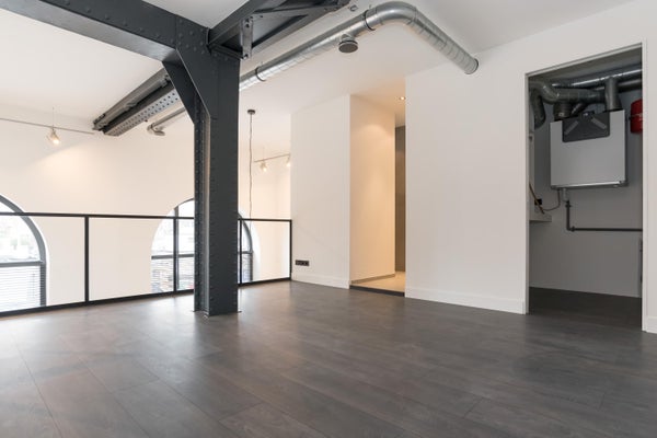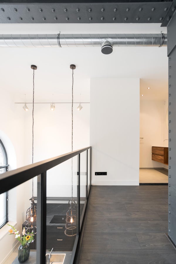 De trap van hout en staal vormt een stoer architectonisch element en leidt naar de vide, die uitstekend geschikt is als slaapkamer. Aangrenzend bevindt zich de moderne badkamer, compleet met fraai wastafelmeubel en een luxe (regen)douche. Grenzend aan de slaapkamer is nog een inloopkast beschikbaar waar de CV-ketel zich bevindt.