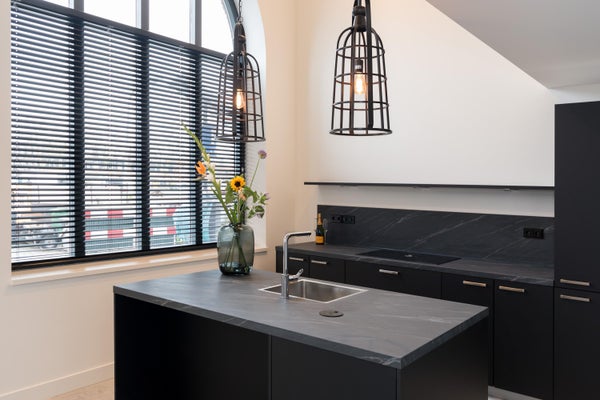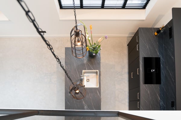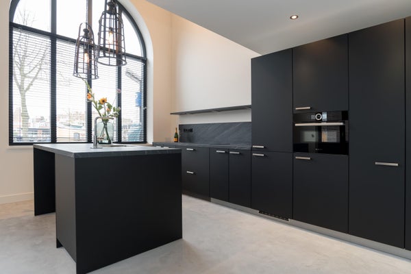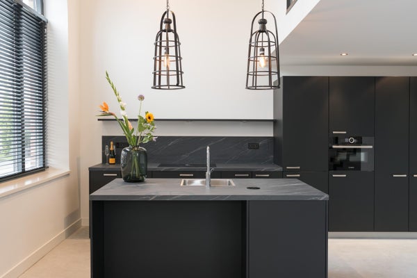 De open keuken met moderne, zwarte afwerking is een ware blikvanger en uitgerust met Bosch-apparatuur en alle denkbare gemakken. Perfect voor wie houdt van koken en gezellig samenzijn.