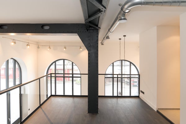 Via je eigen entree stap je binnen in de hal met separaat toilet en toegang tot de indrukwekkende woonkamer. De living ademt ruimte, licht en stijl — dankzij de hoge ramen en een plafond van maar liefst 6 meter hoog.