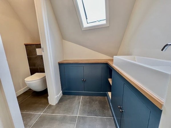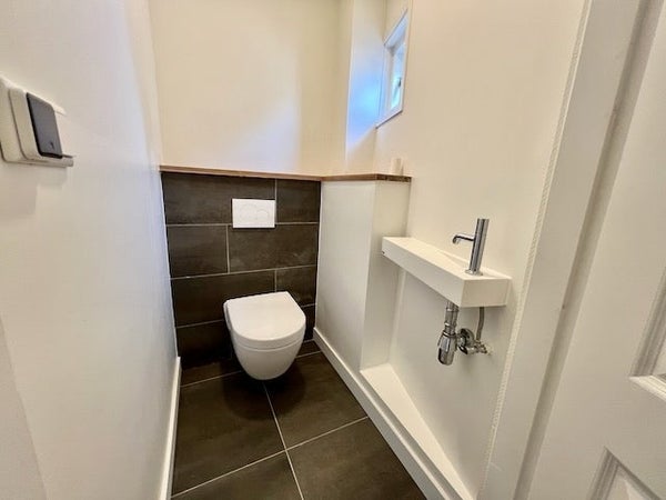 combioven/magnetron, een koelkast en een vriezer. - hal met fonteintje en toegang tot de tweede toiletruimte.
