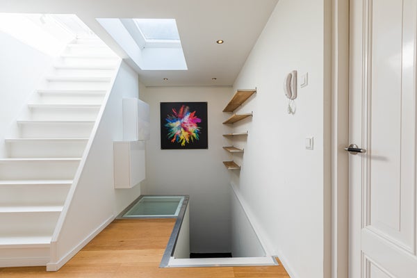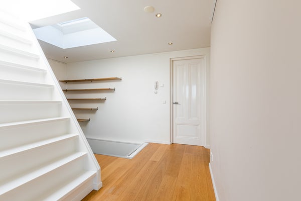 3e verdieping: toegang tot het appartement met kapstok en trap naar de vierde verdieping.