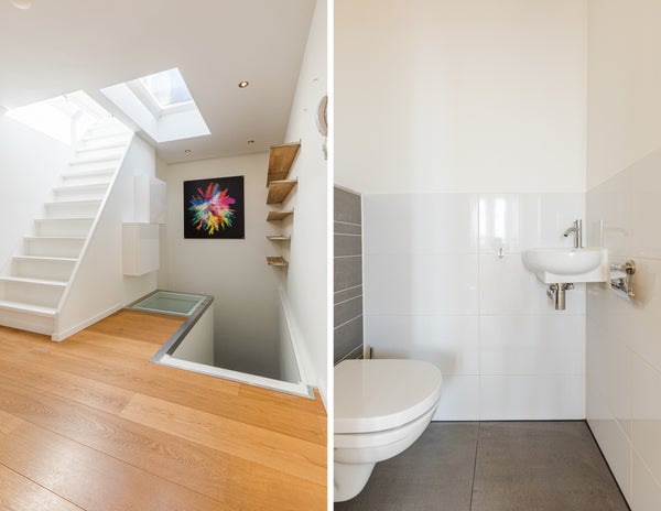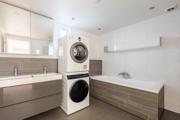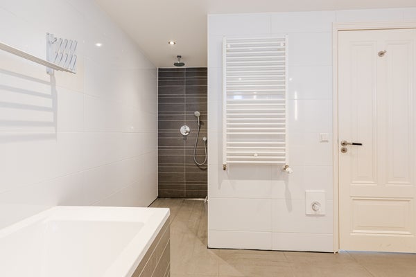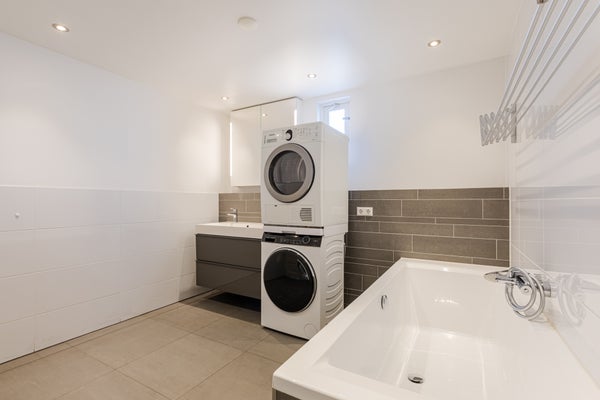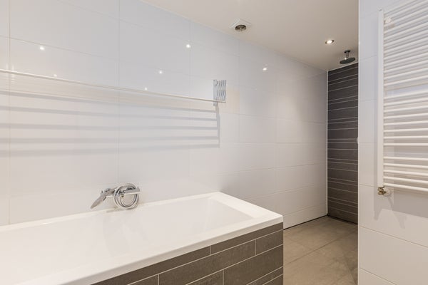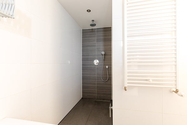 De ruime badkamer beschikt over een ligbad, open inloopdouche, dubbele wastafel en een recent aangeschafte wasmachine en droger. Separaat toilet op de overloop. Het dakterras is een heerlijke plek waarvandaan er een weids uitzicht is over de prachtige stad Haarlem.