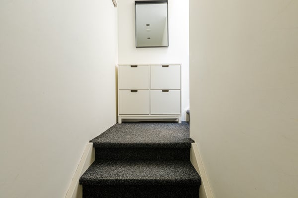 Begane grond: gezamenlijke entree met meterkast en trap naar de derde verdieping.
