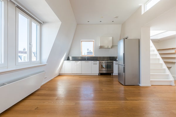 4e verdieping: ruime en licht overloop met toegang tot alle vertrekken in het appartement en tevens de trap naar het zonnige dakterras. Woonkamer vrij zicht en een open keuken voorzien van inbouwapparatuur zoals een vaatwasser, combi-oven, koel-/vriescombinatie. Bijkeuken met opbergruimte en klimaatkast voor wijn. Aan de achterzijde bevinden zich 2 heerlijke slaapkamers met beiden een Frans balkon. Zowel de woonkamer als de slaapkamers zijn voorzien van airco.