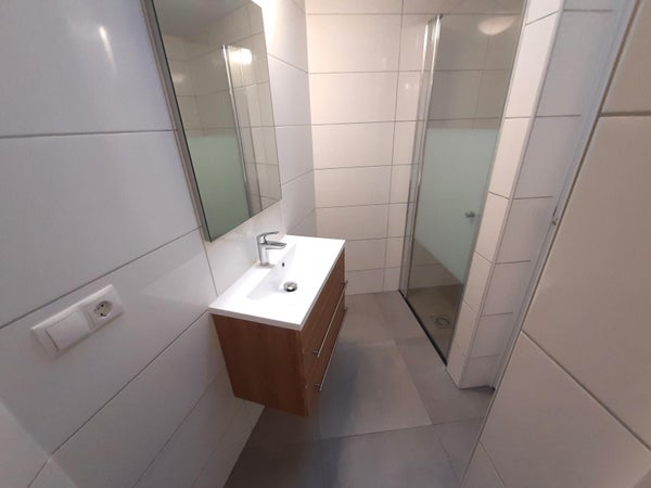 Via de keuken kom je in de moderne badkamer voorzien van wastafel met meubel en inloopdouche.